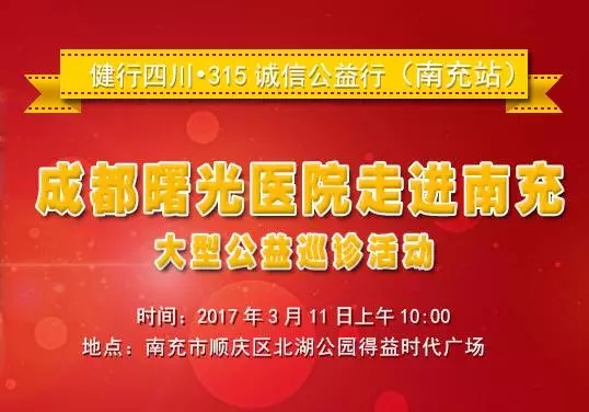 【健行四川315诚实守信公益行】成都市曙光医院门诊走入南充市大中型公益性巡诊主题活动即将开始啦!!!